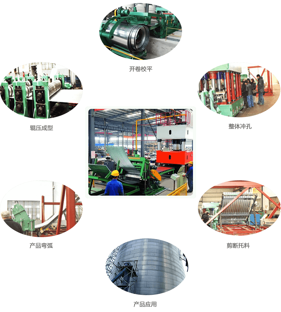 開卷—引料、校平—輥壓成型、矯正—沖孔—彎弧—剪切—出料