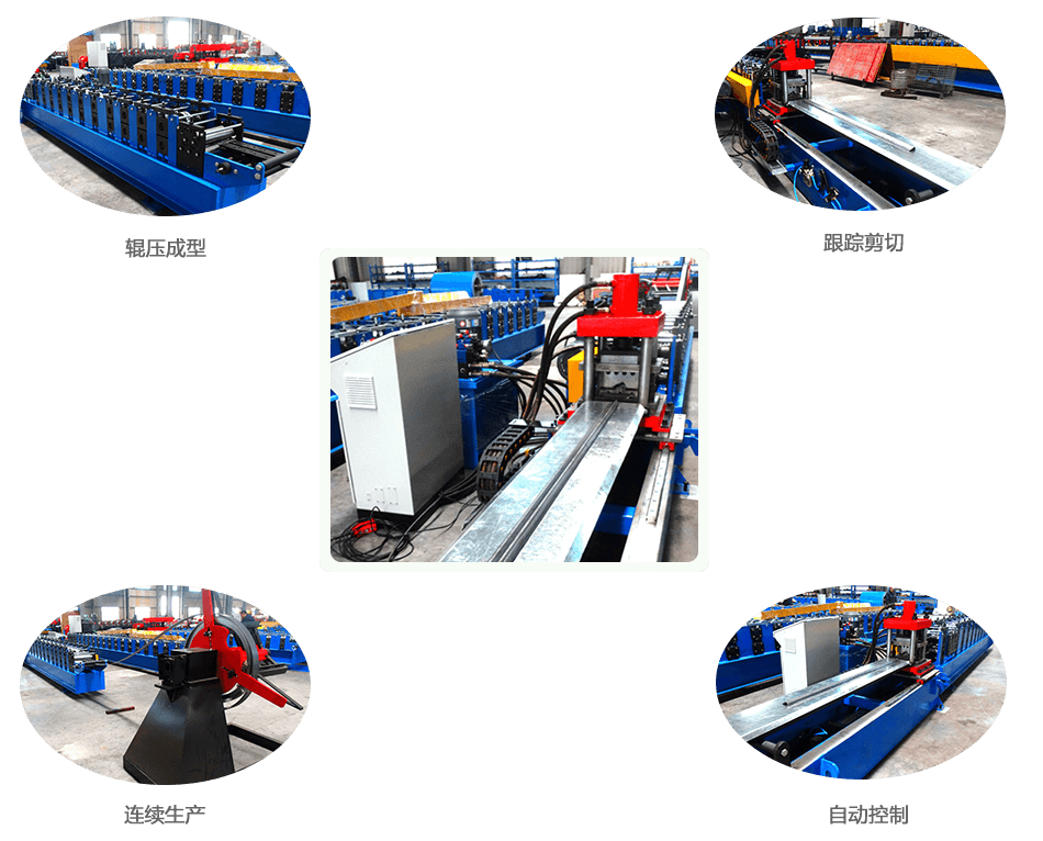 開卷→引料校平→輥壓成型→跟蹤切斷→托料出板