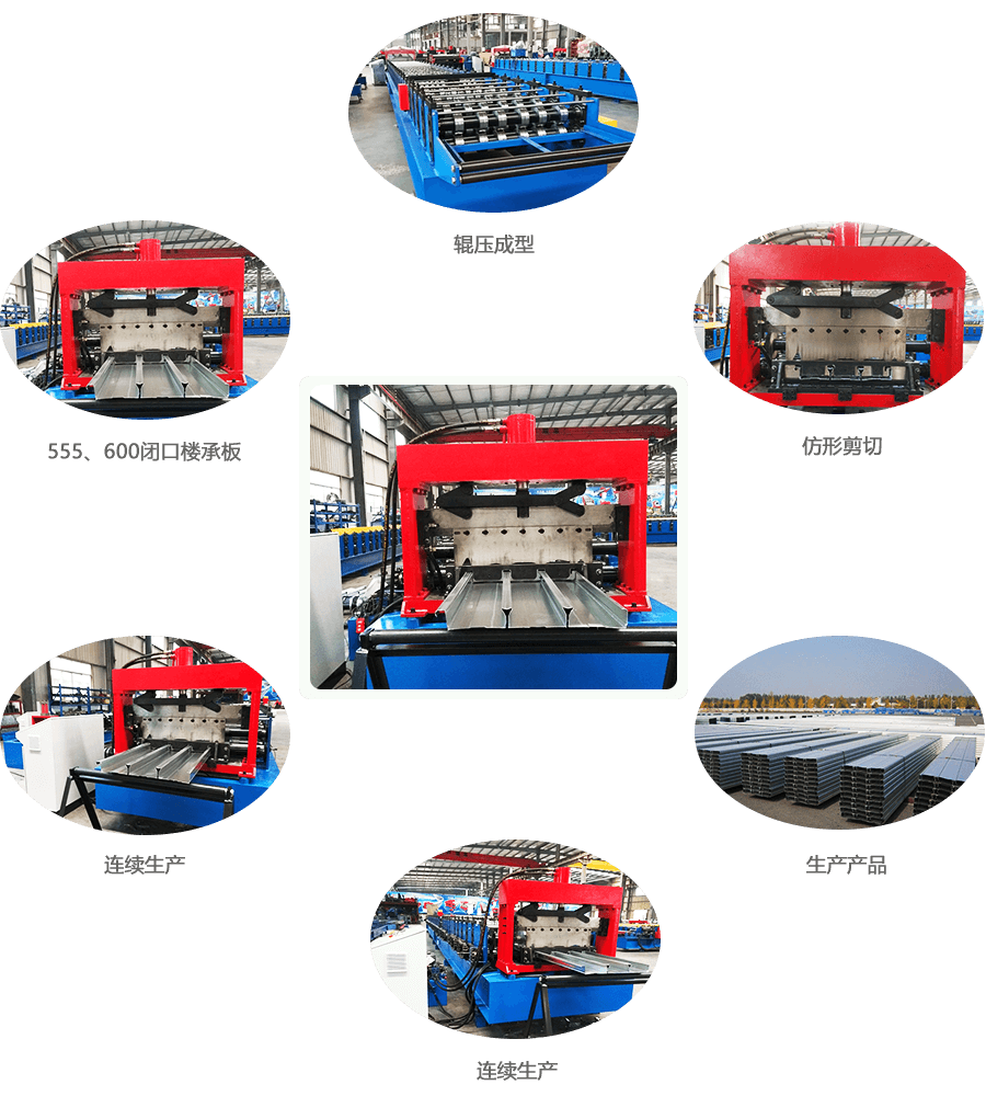 開卷—導(dǎo)向進(jìn)料—輥壓成型—鉚合閉合—定尺切斷—托板出料