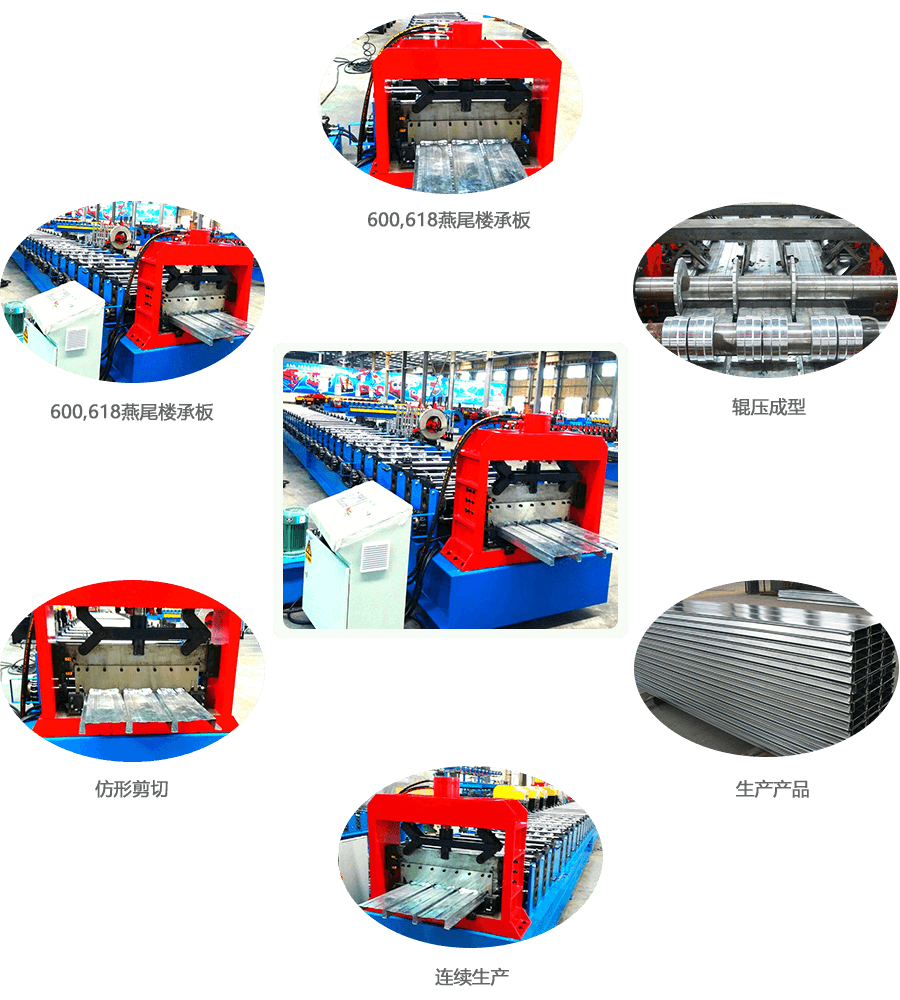 開卷—導向進料—輥壓成型—定尺切斷—托板出料